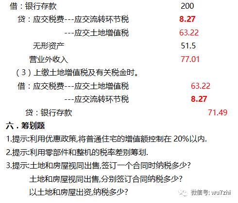 与转让房地产有关的税金中:营业税2300×5%=115(万元)