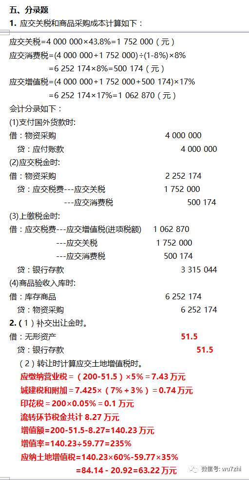 3. 某公司5年前购买一块土地,支付土地款10 000万元,缴纳契税300万元。2013年5月,该公司将这块土地转让,转让价70 000万元,计算该公司转让土地应缴纳的土地增值税。